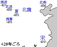 | 499 | 己卯 | 永元1 | 太尉陳顕達が失地回復を図って北伐し、馬圏・南郷を抜いたが、鷹子山で敗退した。陳顕達は江州刺史に左遷された。 始安王蕭遙光が簒奪を図ったが、敗死した。 北魏の南徐州刺史沈陵が来降した。 蕭坦之・劉暄・曹虎が東昏侯の命により次々と殺された。徐孝嗣(453-499)が許準に廃立を勧めたことが暴露され、死を賜った。 江州刺史陳顕達(427-500)が建安王蕭宝寅を奉じて尋陽で起兵したが、敗死した。 | 太和23 | 元英が斉の陳顕達の北伐をはばんだが敗れ、馬圏を失陥した。孝文帝が出馬し、武衛将軍元嵩が斉軍を大破した。 孝文帝(位471-499)が崩じ、太子元恪が立つ(宣武帝)。 尚書令の王粛が南朝の官制に倣って官品を定めた。 | |
