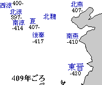 | 499 | 己卯 | 永元1 | 太尉陳顕達が失地回復を図って北伐し、馬圏・南郷を抜いたが、鷹子山で敗退した。陳顕達は江州刺史に左遷された。 始安王蕭遙光が簒奪を図ったが、敗死した。 北魏の南徐州刺史沈陵が来降した。 蕭坦之・劉暄・曹虎が東昏侯の命により次々と殺された。徐孝嗣(453-499)が許準に廃立を勧めたことが暴露され、死を賜った。 江州刺史陳顕達(427-500)が建安王蕭宝寅を奉じて尋陽で起兵したが、敗死した。 | 太和23 | 元英が斉の陳顕達の北伐をはばんだが敗れ、馬圏を失陥した。孝文帝が出馬し、武衛将軍元嵩が斉軍を大破した。 孝文帝(位471-499)が崩じ、太子元恪が立つ(宣武帝)。 尚書令の王粛が南朝の官制に倣って官品を定めた。 | |